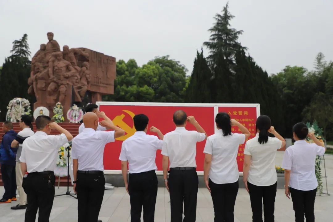 參觀結(jié)束后,全體黨員在紀(jì)念碑處重溫入黨誓詞,用心感受革命先烈們在這里用熱血做出的斗爭和用生命抒寫的初心和使命。